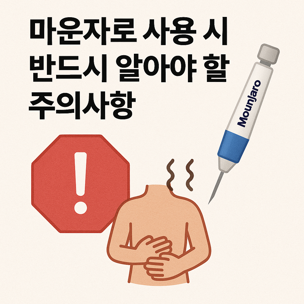 아무리 효과가 뛰어난 신약이라도 모든 환자에게 무조건 적합한 것은 아닙니다. 마운자로 역시 사용 시 반드시 지켜야 할 주의사항이 있습니다. 우선, 이 약물은 주사제로 투여되기 때문에 매번 동일한 부위에 맞으면 염증이나 통증이 생길 수 있습니다. 따라서 복부, 허벅지, 팔뚝 등 부위를 번갈아 가며 사용하는 것이 권장됩니다. 또한, 일부 환자들은 투여 초기 복통, 구토, 메스꺼움, 설사 같은 소화기계 부작용을 경험할 수 있습니다.